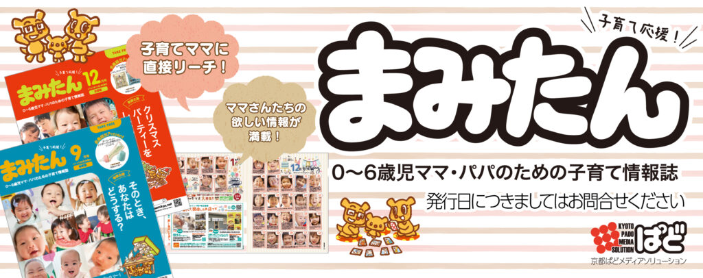 まみたんは、ぱどグループが発行するプレママや子育てママに役立つ地域情報をお届けする情報誌。会員を中心としたイベントやモニター等など地域に根ざした「創客」が行える媒体です。主に幼稚園や保育園、幼児施設などに設置をしています。住宅・軽自動車・子供向けスクール・アパレル・塾などの業種のお客様におすすめの媒体です。